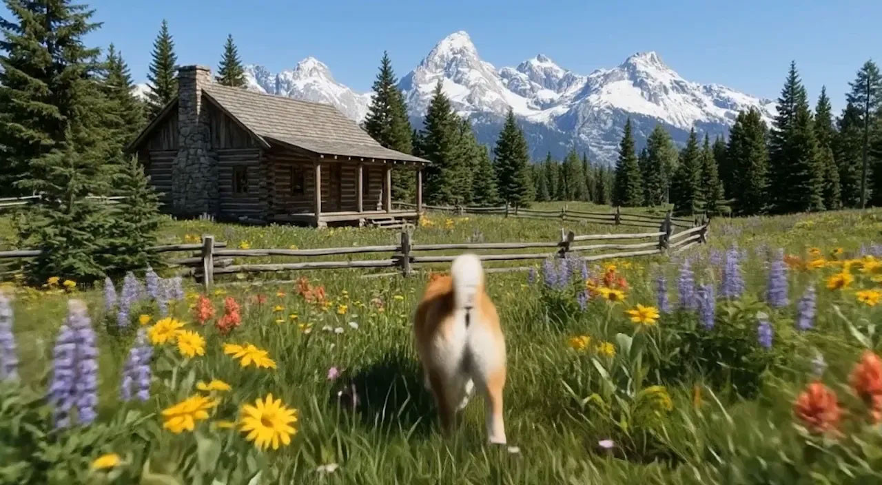- 환경: 야생화가 만발한 사실적인 알프스 고산 초원. 상록의 소나무들 사이로 현관이 있는 소박한 통나무 오두막이 자리하고 있다. 통나무 울타리가 집 주변을 구불구불하게 감싸고 있다. 배경에는 눈으로 덮인 험준한 산봉우리 세 개가 보인다.
